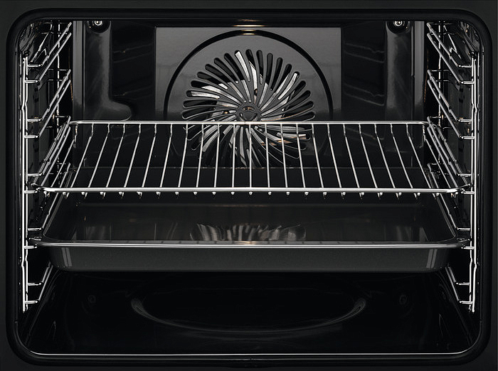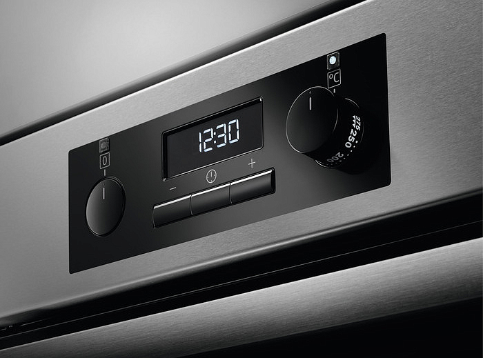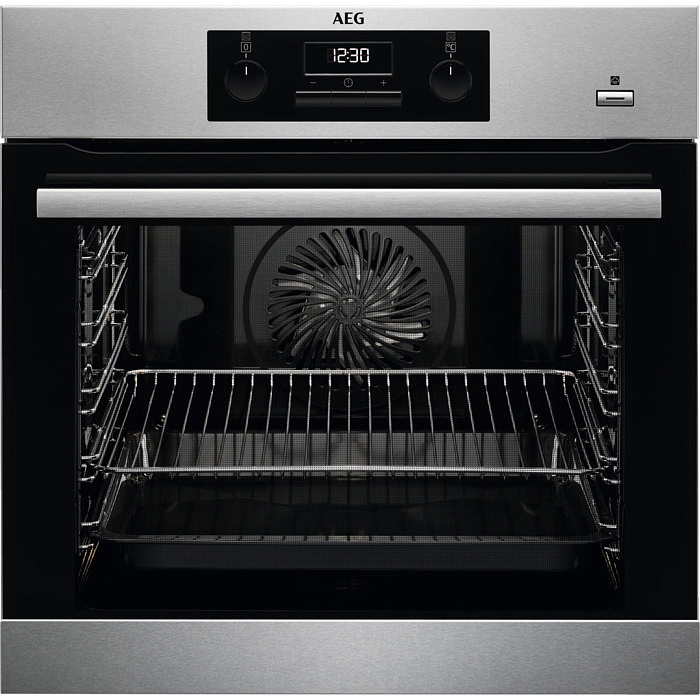 Духовой шкаф Aeg BEB351010M оснащена вентилятором охлаждения, рядом стоящая мебель не будет нагреваться. Освещение духовки галогеновое помогает отслеживать процесс приготовления. Управление осуществляется с помощью кнопок и поворотного регулятора, также имеется дисплей на котором выводится время таймера.