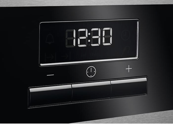 Управление осуществляется с помощью кнопок и поворотных утапливаемых переключателей, а также электронного дисплея LED. Такое управление позволяет точно настраивать все параметры приготовления, что важно для достижения идеального результата. Встроенный таймер обладает функцией звукового сигнала, автоматического отключения и прямого отсчета времени, а также возможностью установки продолжительности приготовления.