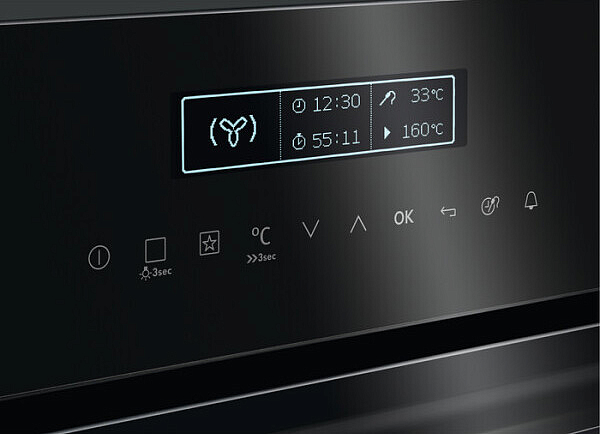Духовой шкаф Aeg BPE742220B оснащен сенсорным управлением, имеется дисплей на котором отображается время таймера. Рядом стоящая мебель не будет нагреваться так, как в устройстве предусмотрен вентилятор охлаждения. На поверхности аппарата не будут оставаться отпечатки пальцев.