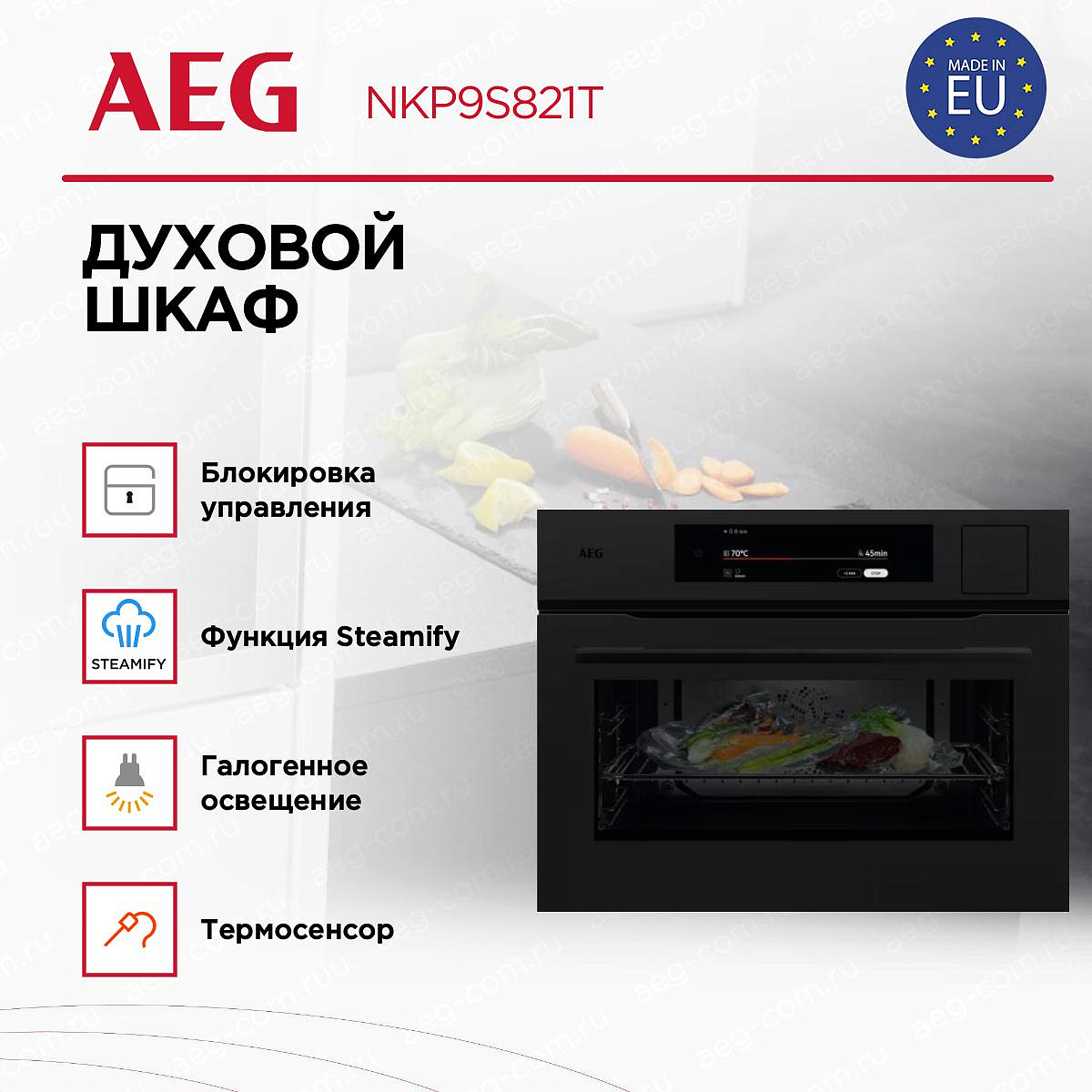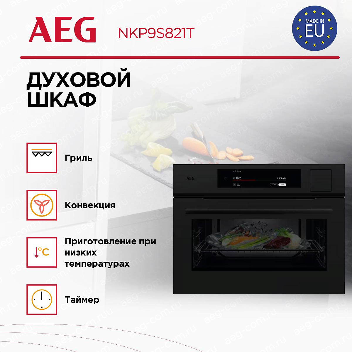 Духовой шкаф AEG NKP9S821T представляет собой компактное и стильное устройство, идеально подходящее для современной кухни. Его черный цвет и элегантный дизайн добавляют изысканности в интерьер, а габариты 45.5x56x55 см позволяют легко встроить его в кухонный гарнитур. Этот шкаф оснащен электронным управлением с сенсорными переключателями и TFT-дисплеем, что делает его использование интуитивно понятным и удобным. Благодаря функции SteamPro, устройство предлагает три типа пара: интенсивный, малый и нормальный, что позволяет готовить блюда с сохранением всех полезных свойств продуктов.