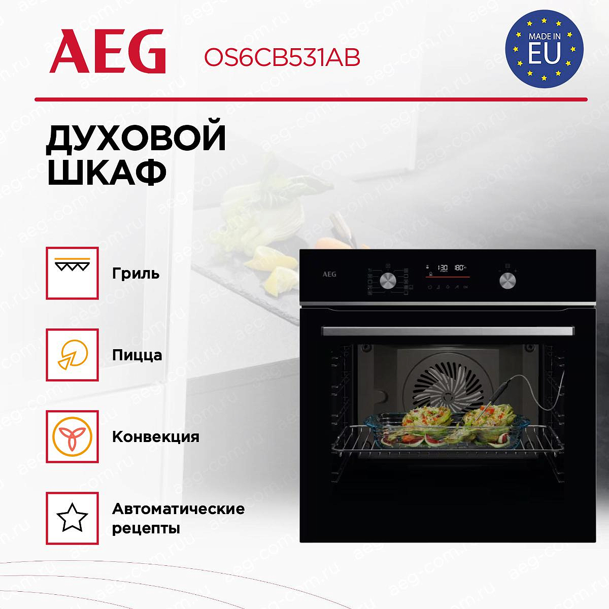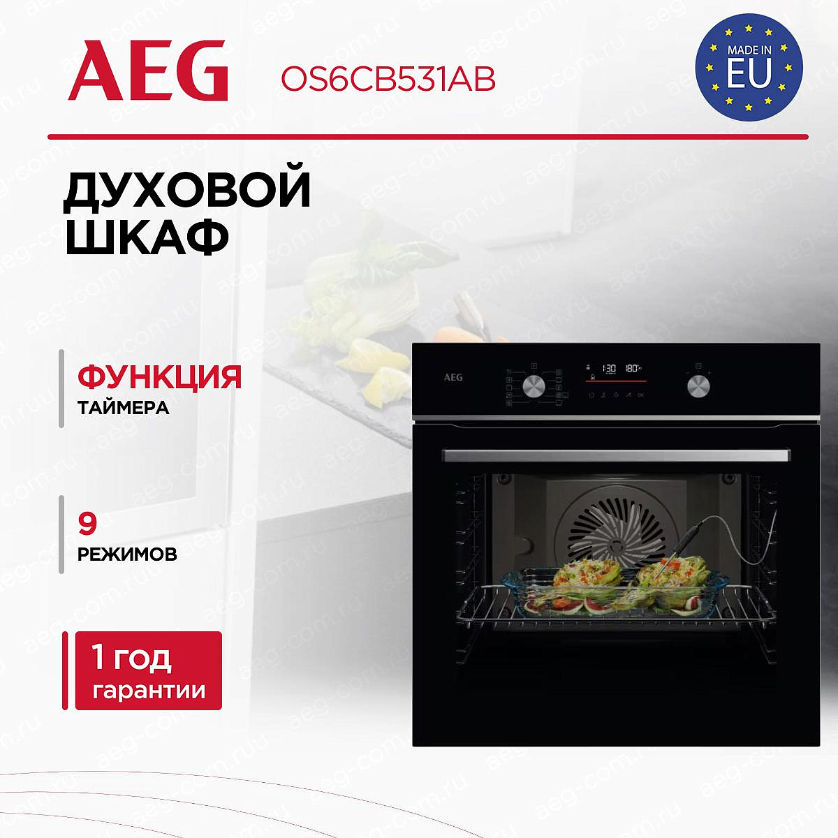 Стильный черный цвет духового шкафа подчеркивает его современный и элегантный дизайн. Он оснащен электронным типом управления, что делает его использование максимально удобным и интуитивным. Переключатели сенсорные, поворотные и утапливаемые, что облегчает управление прибором. На передней панели расположен LED дисплей, на котором отображается информация о текущем режиме работы и таймере. Духовой шкаф AEG OS6CB531AB оснащен 9 режимами приготовления, включая влажный горячий воздух, пиццу, верхний и нижний нагрев, гриль, турбогриль, разморозку и приготовление замороженных продуктов. Это делает его универсальным помощником на кухне, способным справиться с любыми кулинарными задачами.