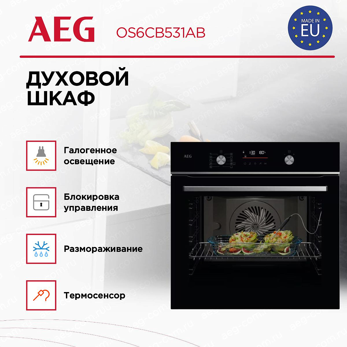 Особенностью этой модели является наличие термосенсора (термощупа), который позволяет контролировать температуру приготовления продуктов. Плавное закрытие дверцы обеспечивает безопасность использования, а галогенное освещение позволяет контролировать процесс приготовления. Для удобства уборки шкаф оснащен системой каталитической очистки. Блокировка от детей обеспечивает безопасность использования, а вентилятор охлаждения предотвращает перегрев. Телескопические направляющие на 1 уровне позволяют легко перемещать противни внутри духовки. В комплекте с духовым шкафом идут один глубокий противень и один противень для выпечки, а также решетка из нержавеющей стали. Максимальная мощность духовки составляет 3.5 кВт, что позволяет быстро и эффективно готовить любые блюда.
