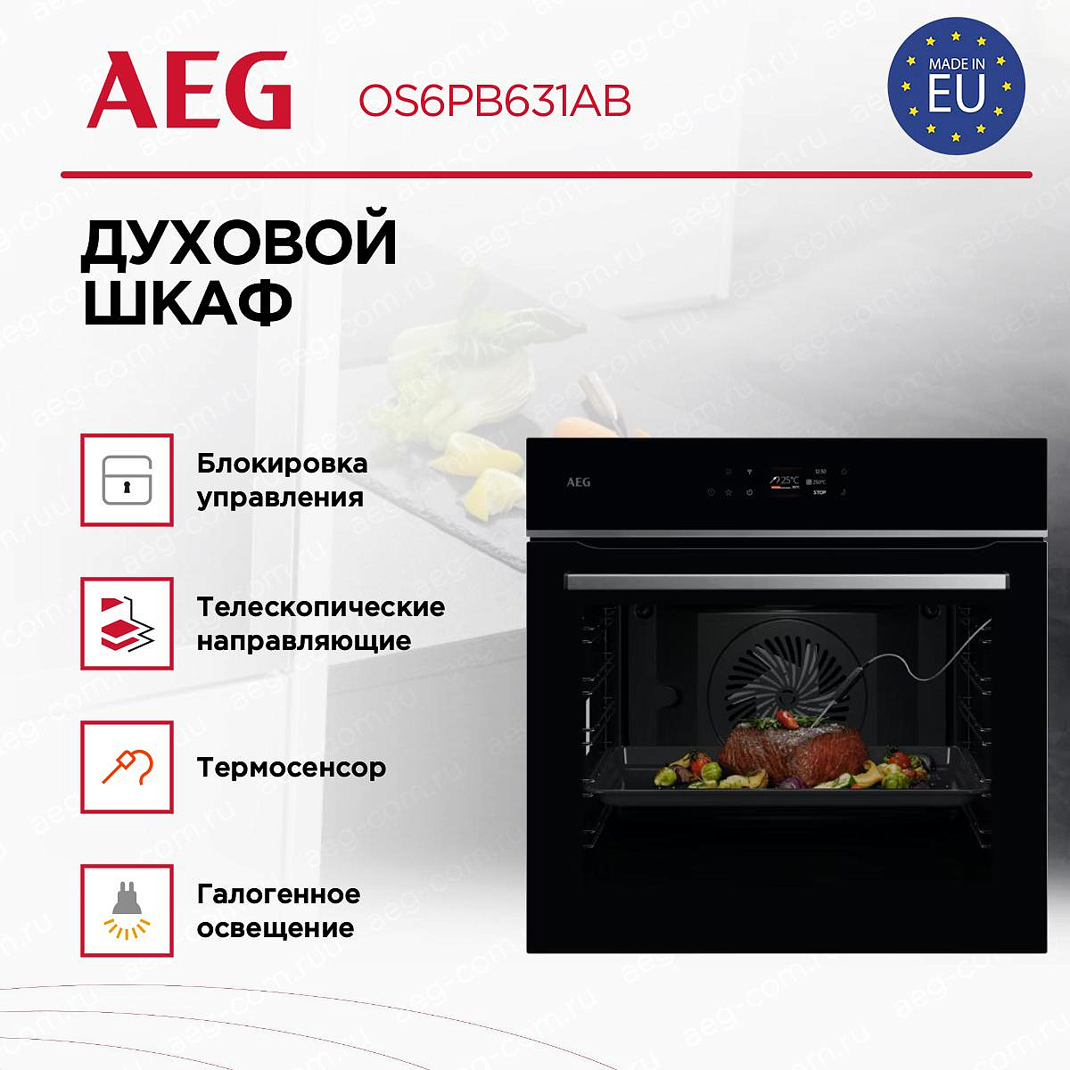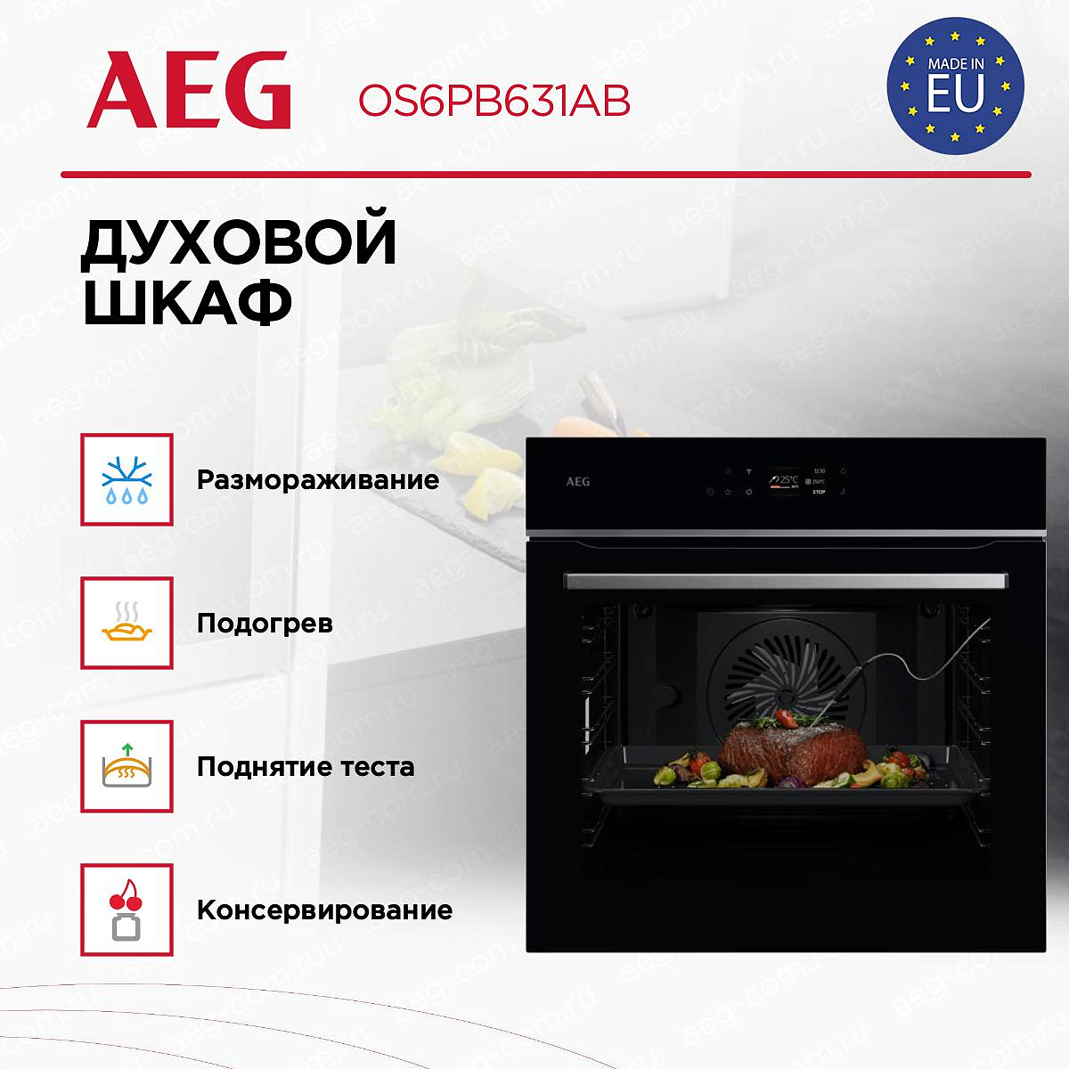 Духовой шкаф AEG OS6PB631AB оснащен сенсорными переключателями и TFT-дисплеем, что обеспечивает удобство и простоту управления. Также он имеет звуковой таймер с автоматическим отключением и функцией отсрочки старта, что позволяет вам гибко планировать свое время. С 17 режимами приготовления и 3 уровнями приготовления, вы сможете приготовить любое блюдо, от пиццы до хлеба, от замороженных продуктов до консервированных продуктов. Встроенный термосенсор обеспечивает точное контролирование температуры приготовления.