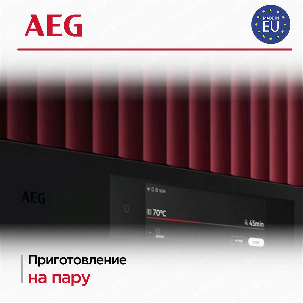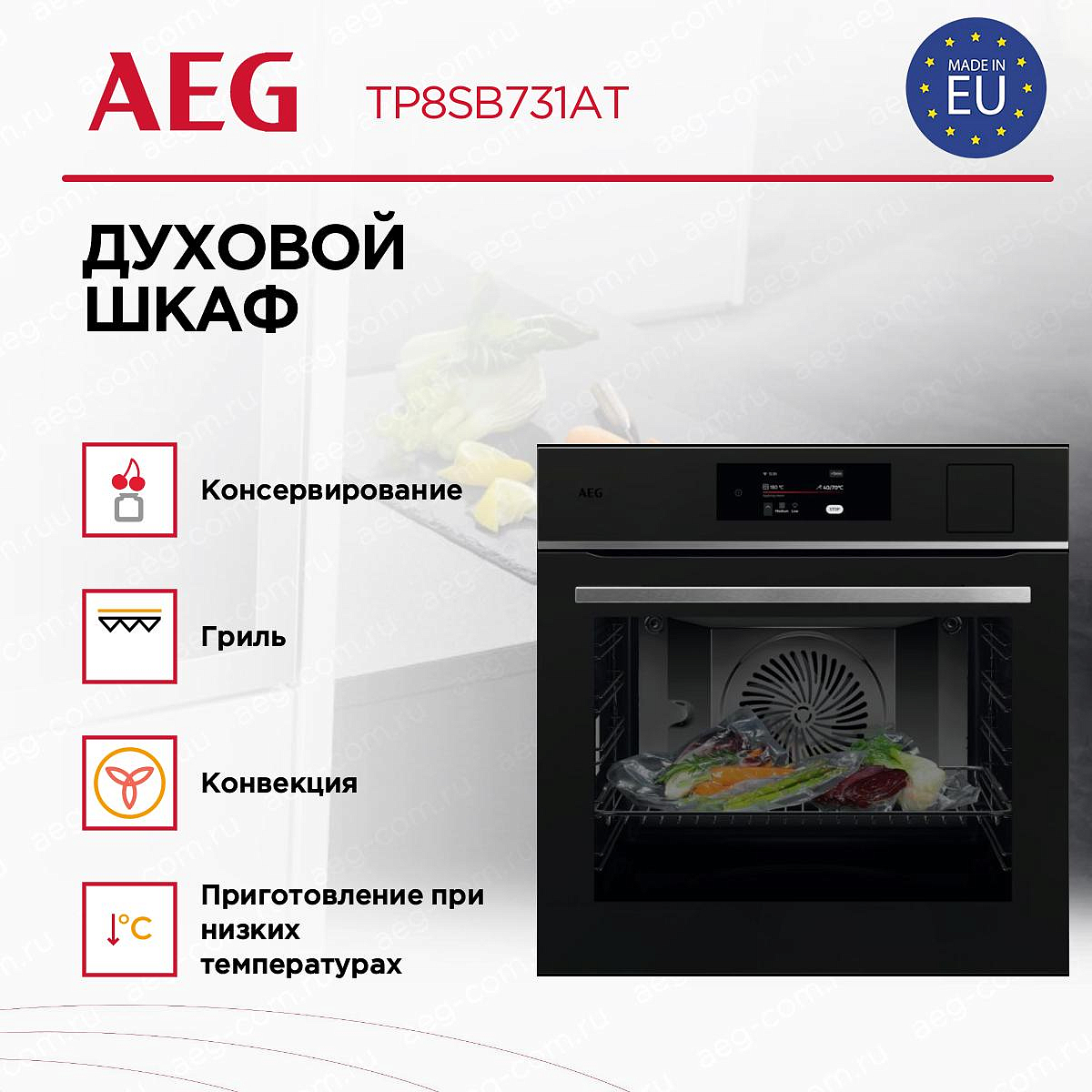 Духовой шкаф AEG TP8SB731AT — это сочетание строгой эстетики и продвинутых технологий, прибор выполнен в матовом черном цвете и легко впишется в интерьер современной кухни. Минималистичный фасад с сенсорными переключателями и TFT-дисплеем создает впечатление премиального решения, а двухстороннее галогенное освещение обеспечивает равномерную подсветку. Корпус компактно интегрирован, дверца со сглаженным механизмом закрытия скрывает просторную камеру объемом 70 литров, удобную для крупных запеканок и многоуровневых приготовлений.