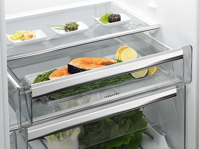 Технология NoFrost в морозильных отсеках холодильников AEG использует динамическую циркуляцию воздуха через встроенные вентиляторы для обеспечения стабильного распределения температуры, предотвращая формирование инея и ледяных наростов. Помимо этого, система активно отводит излишки влажности, исключая возможность конденсации и последующего порчи продуктов, тем самым продлевая срок их годности.