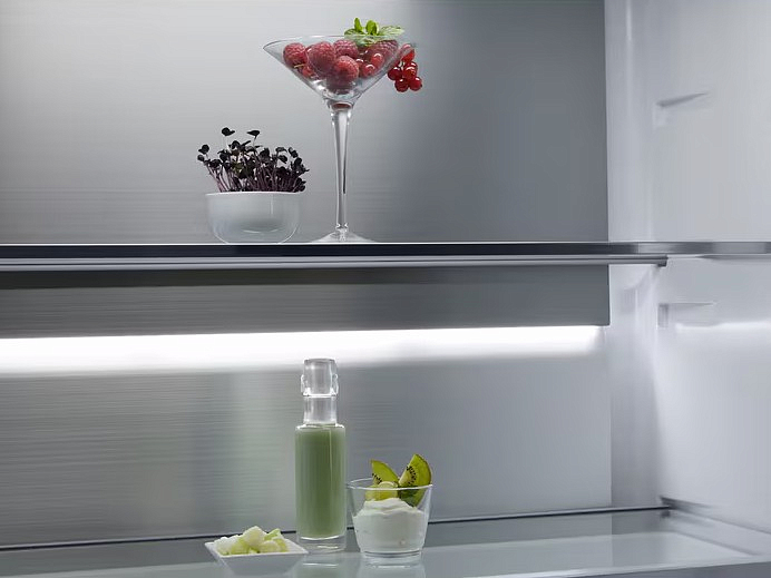 Внутри холодильной камеры предусмотрены четыре полки и два ящика, выполненные из качественного пластика, которые легко чистятся. Зона свежести FreshZone с технологией ChillZone 0° MultiSwitch поддерживает оптимальные условия для хранения продуктов, продлевая их срок годности. Электронная независимая регулировка температуры для каждого отделения позволяет точно настроить нужные параметры, а цифровой дисплей на двери и сенсорная система управления обеспечивают легкость в использовании.