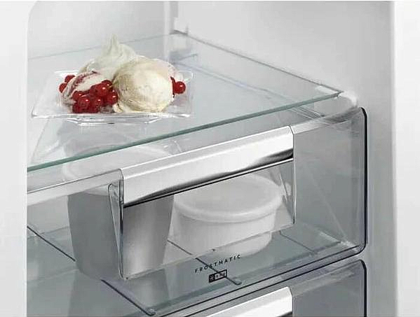 Технология NoFrost в морозильных отсеках холодильников AEG использует динамическую циркуляцию воздуха через встроенные вентиляторы для обеспечения стабильного распределения температуры, предотвращая формирование инея и ледяных наростов. Помимо этого, система активно отводит излишки влажности, исключая возможность конденсации и последующего порчи продуктов, тем самым продлевая срок их годности.