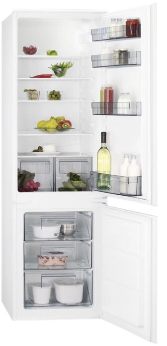 В основу встраиваемого холодильника Аег SCR418F3LS положен надежный и экономичный инверторный компрессор, соответствующий классу энергопотребления А+. Модели с таким классом расходуют энергию более рационально. Встроенная система охлаждения позволяет избежать резких перепадов температуры, а образование льда и инея замедляется настолько, что размораживание вручную требуется всего один раз в год. Для лучшей сохранности продуктов в этом приборе предусмотрена сигнализация, которая срабатывает при долгом нахождении двери в открытом положении.