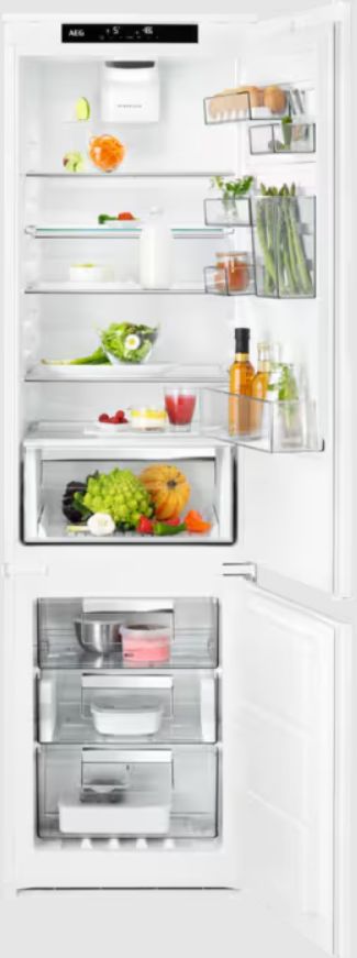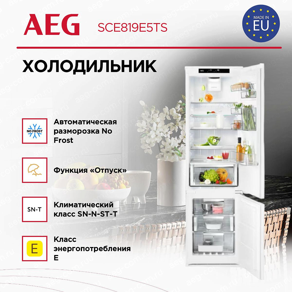 Встраиваемый холодильник AEG SCE819E5TS — это сочетание современного дизайна и передовых технологий. Он отличается элегантным внешним видом, который позволяет ему гармонично вписаться в любой интерьер. Размеры устройства составляют 188.4 см в высоту, 54.6 см в ширину и 54.9 см в глубину, что обеспечивает достаточное количество пространства для хранения продуктов. Габариты ниши для встраивания составляют 189.4×56×55 см. Общий объем холодильника составляет 276 литров, из которых 214 литров приходится на полезный объем холодильной камеры, а 62 литра — на морозильную камеру.