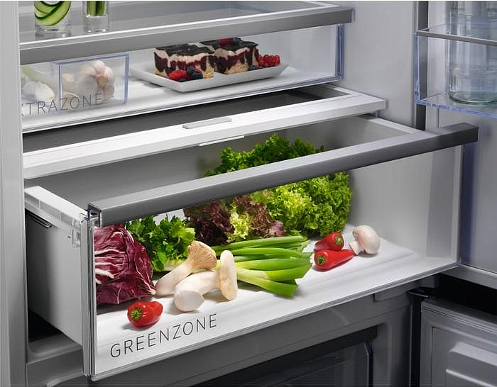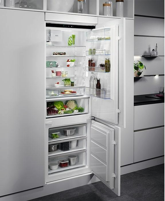 Встраиваемый холодильник AEG NSC7G751ES имеет 2 отделения: холодильное и морозильное. При помощи сенсорной панели управления и ЖК-дисплея можно настраивать температуру для каждой зоны отдельно. Режим «Отпуск» позволяет сэкономить электроэнергию во время вашего отсутствия, выставляя минимальные параметры работы прибора. Функция TwinTech обеспечивает оптимальные условия для длительного хранения разных типов продуктов. Благодаря правильному уровню влажности, овощи и фрукты останутся свежими максимально долго.