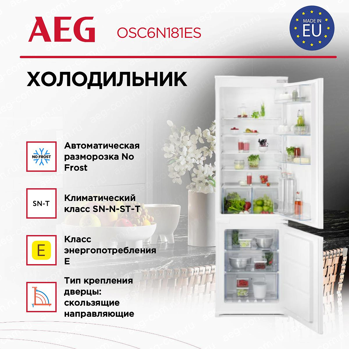 Встраиваемый холодильник с морозильником AEG OSC6N181ES является идеальным выбором для тех, кто ценит качество, функциональность и стиль. Это устройство относится к серии TwinTech, которая заслужила признание потребителей благодаря своим превосходным характеристикам и надежности. С габаритами 177.2x54.6x54.9 см, он идеально впишется в любой интерьер, а его общий объем в 257 литров позволит разместить все необходимые продукты.