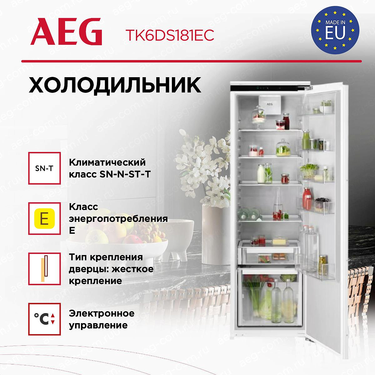 Встраиваемый холодильник AEG TK6DS181EC - это сочетание стильного дизайна и высококачественных функций, обеспечивающих идеальное хранение продуктов. Эта модель представляет собой прекрасный пример инновационных технологий и элегантного дизайна, которые делают ее неотъемлемой частью современной кухни. С первого взгляда на устройство, можно заметить его элегантный и современный дизайн. Минималистичный стиль, гладкие линии и нейтральный цвет делают его идеальным дополнением к любому интерьеру. Габариты устройства позволяют вместить его даже на небольшой кухне, при этом обеспечивая достаточный объем для хранения продуктов.