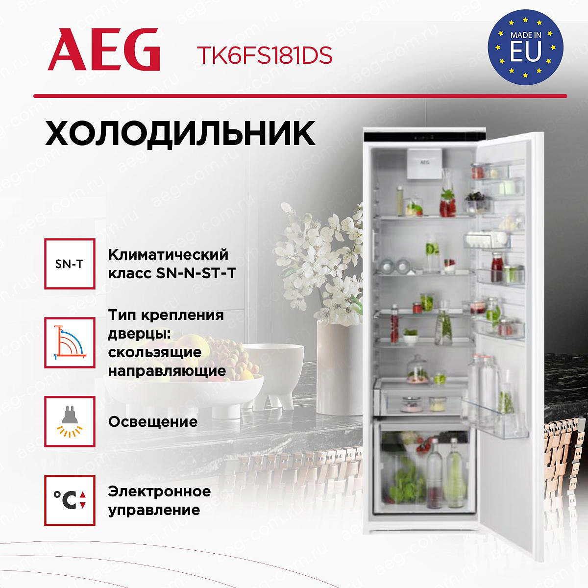 Встраиваемый холодильник AEG TK6FS181DS — это стильное и функциональное решение для вашего дома. Благодаря своим компактным размерам и элегантному дизайну, он идеально впишется в интерьер любой кухни. Высота устройства составляет 177,2 см, ширина — 54,6 см, а глубина — 54,9 см, что позволяет ему легко разместиться в нише размером 178x56x55 см. Объем холодильной камеры равен 307 литрам, что обеспечивает достаточно места для хранения продуктов. Современные технологии Coolmatic и DynamicAir гарантируют быстрое и равномерное охлаждение, а система автоматической разморозки избавит вас от лишних забот.