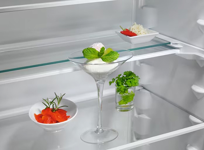 Внутри холодильника расположены 5 полок из стекла, 4 из которых можно регулировать по высоте. Комплектация включает подставку для яиц, что делает хранение продуктов еще более удобным. Морозильное отделение оборудовано тремя пластиковыми ящиками, а его производительность замораживания достигает 7 кг в сутки.