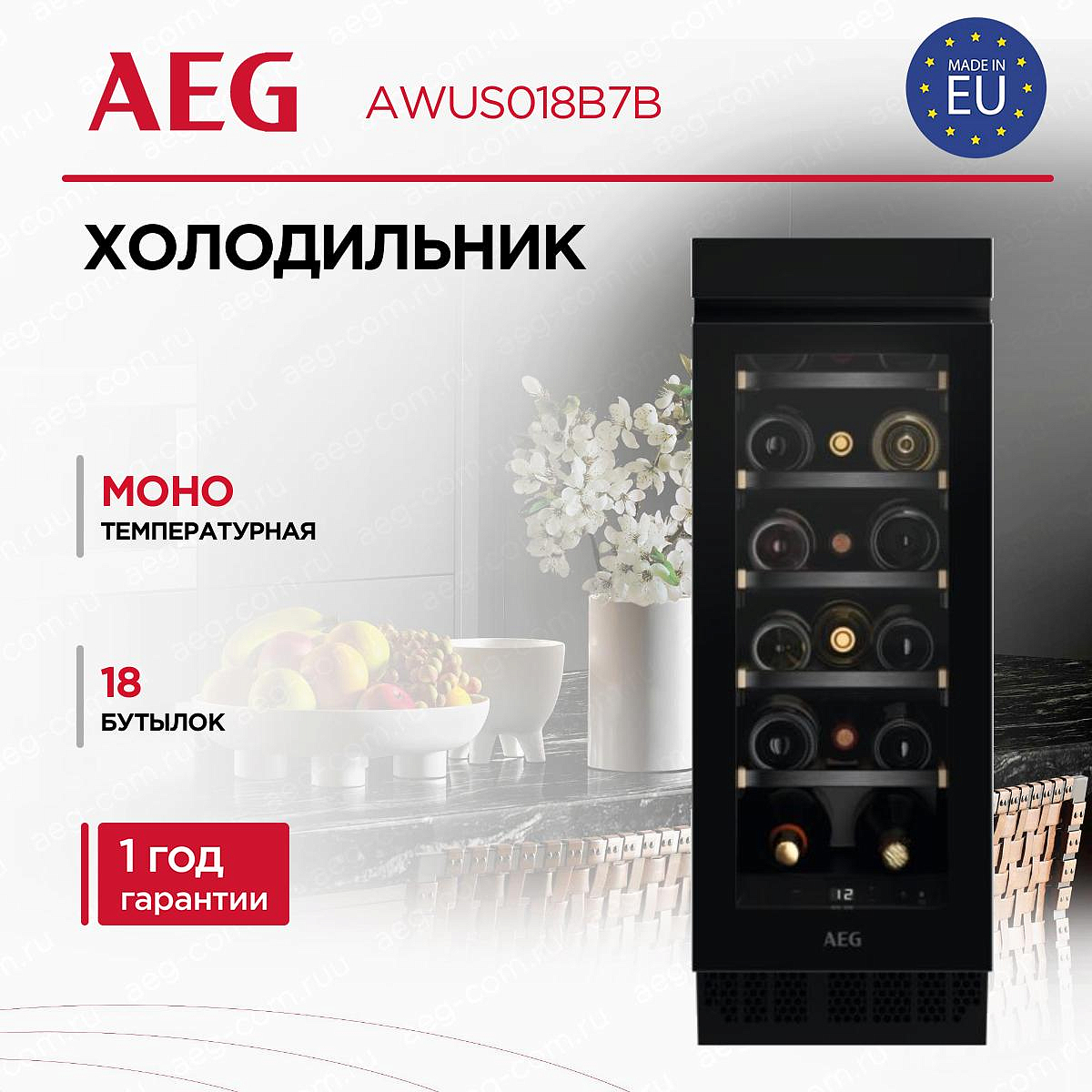 Винный шкаф Аег AWUS018B7B поставляется с гарантией на 12 месяцев. Это подтверждает высокое качество продукта и дает пользователю уверенность в его надежности и долговечности.