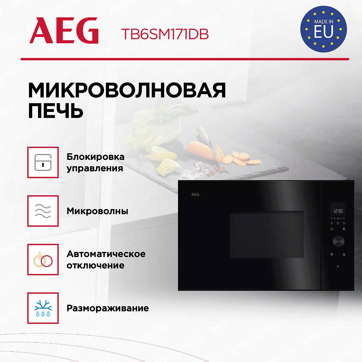 Встраиваемая микроволновая печь AEG TB6SM171DB сочетает лаконичный внешний вид и продуманную эргономику для современных кухонь: корпус строгого чёрного цвета, плоская фронтальная панель с цифровым дисплеем и сенсорными переключателями создают ощущение минимализма и удобства эксплуатации. Панель управления аккуратно интегрирована в фасад, а открывание дверцы происходит с помощью сенсорного механизма — удобный доступ к камере при минимальном усилии. Электронная регулировка температуры и цифровой экран отображают длительность приготовления и позволяют точно задать параметры: таймер прямого отсчёта с максимальным временем до 95 минут и часы делают управление удобным и предсказуемым.