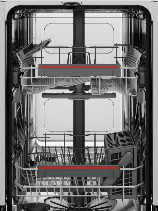 Встраиваемая посудомоечная машина AEG FSE32407Z шириной 44,5 см призвана избавить вас от большой части кухонных хлопот. Внутри камеры помещается большое количество комплектов столовых принадлежностей, так что модель отлично подойдёт для семьи из трёх-четырёх человек, и помимо этого, она идеально впишется в небольшое помещение, не занимая много мест и впишется в любой интерьер. Инверторный двигатель обеспечивает устройству бесперебойную работу на протяжении всего срока службы. Плюс такой мотор отвечает за сниженное расходование воды и ресурса электросети.