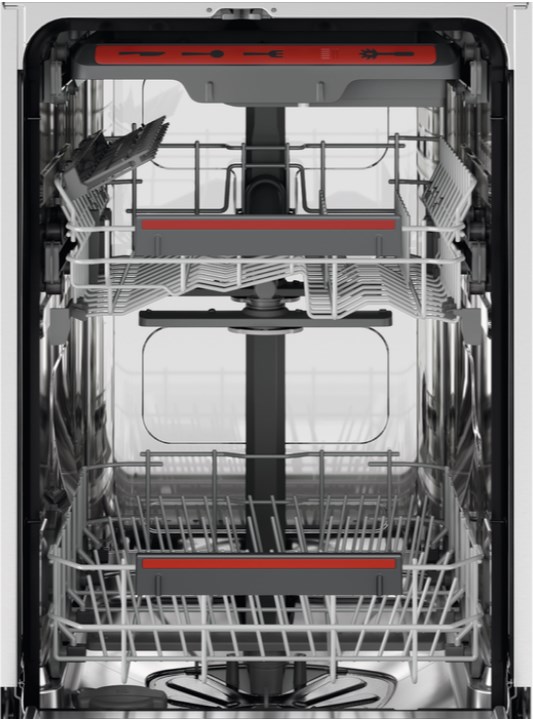 MaxiFlex — это инновационная третья корзина для столовых приборов в посудомоечных машинах AEG. Она обеспечивая исключительную вместительность и гибкость размещения посуды. Гибкая конструкция и выдвижные секции позволяют адаптировать пространство под любые размеры и формы утвари, обеспечивая эффективное и удобное размещение. Это решение повышает эффективность мытья кухонных аксессуаров различных размеров.