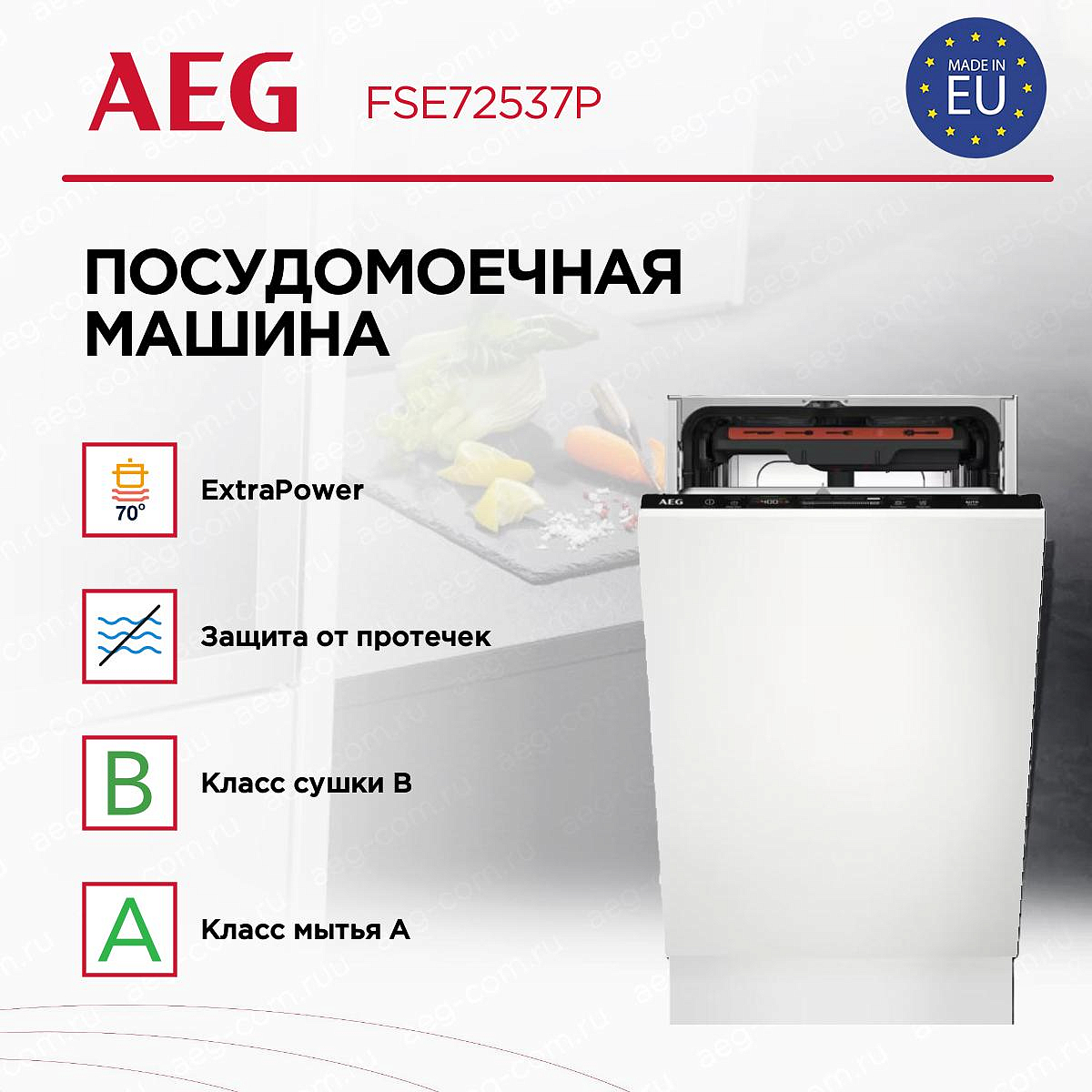 Встраиваемая посудомоечная машина AEG FSE72537P — это современное устройство, созданное для облегчения процесса мытья посуды. Произведенная в Польше, эта машина сочетает в себе высокое качество и продуманный дизайн. Сенсорная панель управления с жидкокристаллическим дисплеем и электронным управлением придает устройству современный и стильный вид. Черный цвет панели управления гармонично сочетается с любым интерьером кухни. Машина является полностью встраиваемой, что позволяет идеально вписать ее в дизайн любого помещения. Ее компактные размеры (81,8 см в высоту, 44,6 см в ширину и 55 см в глубину) позволяют установить ее даже на небольшой кухне. Вместе с тем, внутри машины достаточно места для 10 комплектов посуды. Машина оснащена шестью программами мытья и четырьмя температурными режимами, что позволяет выбрать наиболее подходящий вариант в зависимости от типа и степени загрязнения посуды. Программа ECO предназначена для экономии энергии, а функция быстрой мойки позволяет очистить посуду всего за 30 минут. Для тех, кто предпочитает автоматическую настройку, предусмотрена функция Auto. Особенностью машины является система сушки AirDry Technology, которая обеспечивает эффективную и экономичную сушку посуды. Также в машине предусмотрен таймер отсрочки запуска, который можно установить на период от 1 до 24 часов. Машина оборудована системой защиты от протечек AquaControl и инверторным двигателем с 10-летней гарантией. Рабочая камера изготовлена из нержавеющей стали, что обеспечивает долговечность и надежность устройства.