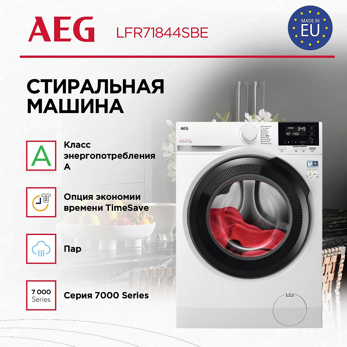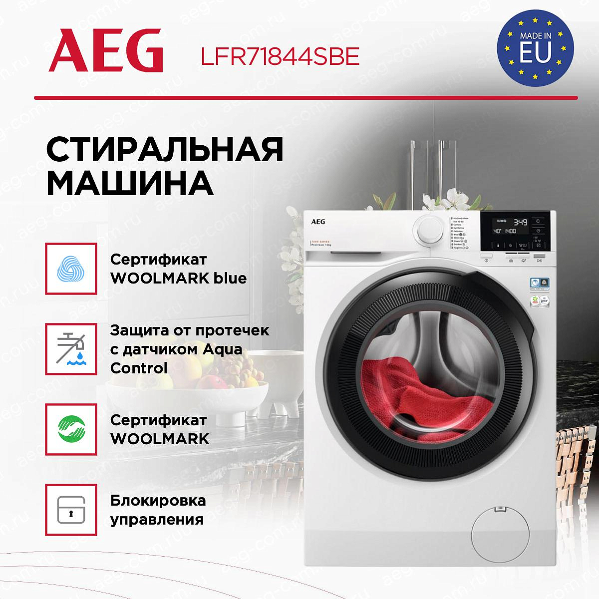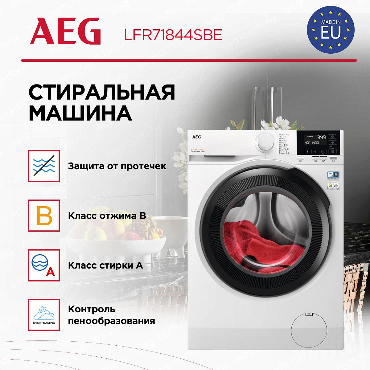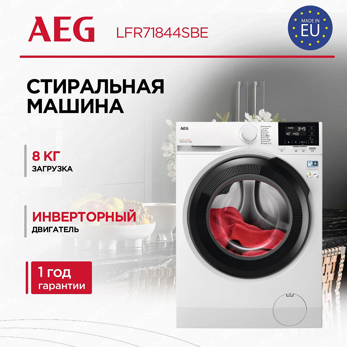 Стиральная машина AEG LFR71844SBE - это полноразмерная, отдельностоящая модель с фронтальной загрузкой белья. Внешний вид этой модели подчёркнуто сдержанный и современный: белый корпус гармонично сочетается с чёрной панелью управления и тёмным загрузочным люком, что придаёт технике элегантность и позволяет ей органично вписаться как в интерьер в стиле минимализм, так и в более тёплые домашние интерьеры.