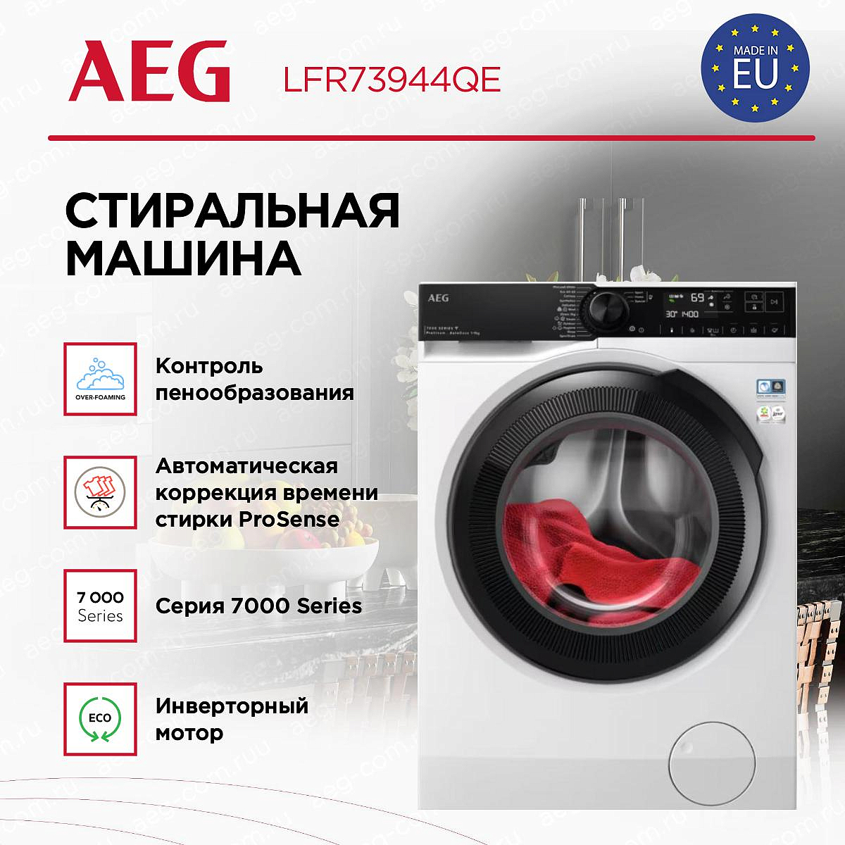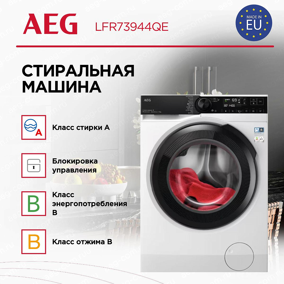 Стальная стиральная машина AEG LFR73944QE из серии 7000 представляет собой сочетание стильного дизайна и передовых технологий. Отдельностоящая модель с фронтальной загрузкой обладает прочным корпусом белого цвета, который гармонично сочетается с черной панелью управления и загрузочным люком.