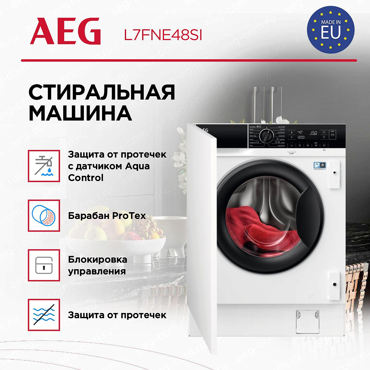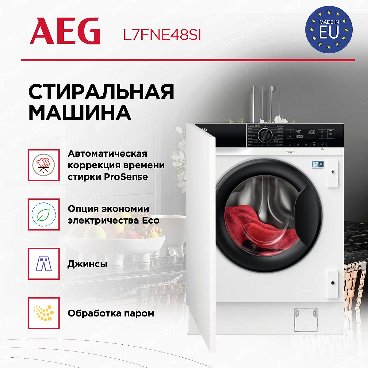 Стационарная стиральная машина AEG L7FNE48SI — это современный и функциональный помощник в быту, который придется по вкусу каждому, кто ценит качество и надежность. Стиральная машина выполнена в классическом белом цвете, что делает ее универсальной для любого интерьера. Черные детали в виде панели управления и загрузочного люка добавляют ей стиля и современности. Машина обладает компактными размерами — высота составляет 81.9 см, ширина — 59.6 см, а глубина — 54 см, что позволяет установить ее даже в небольшой квартире. Несмотря на свои скромные размеры, стиральная машина способна загрузить до 8 кг белья, что делает ее идеальным выбором для большой семьи.