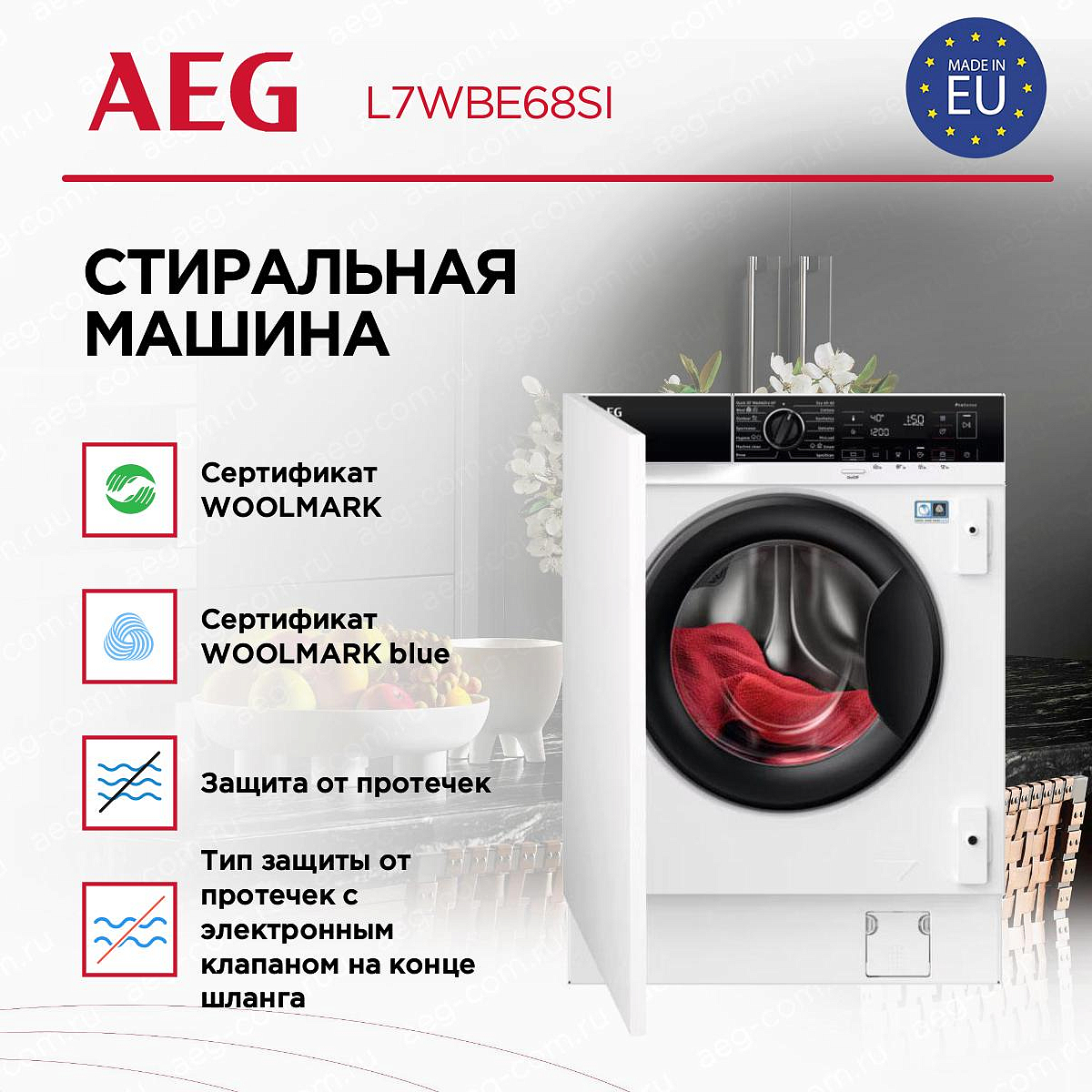 Для безопасности пользователей предусмотрена защита от детей и защита от протечек воды. Сертификат Woolmark гарантирует безопасную стирку даже самых деликатных тканей.