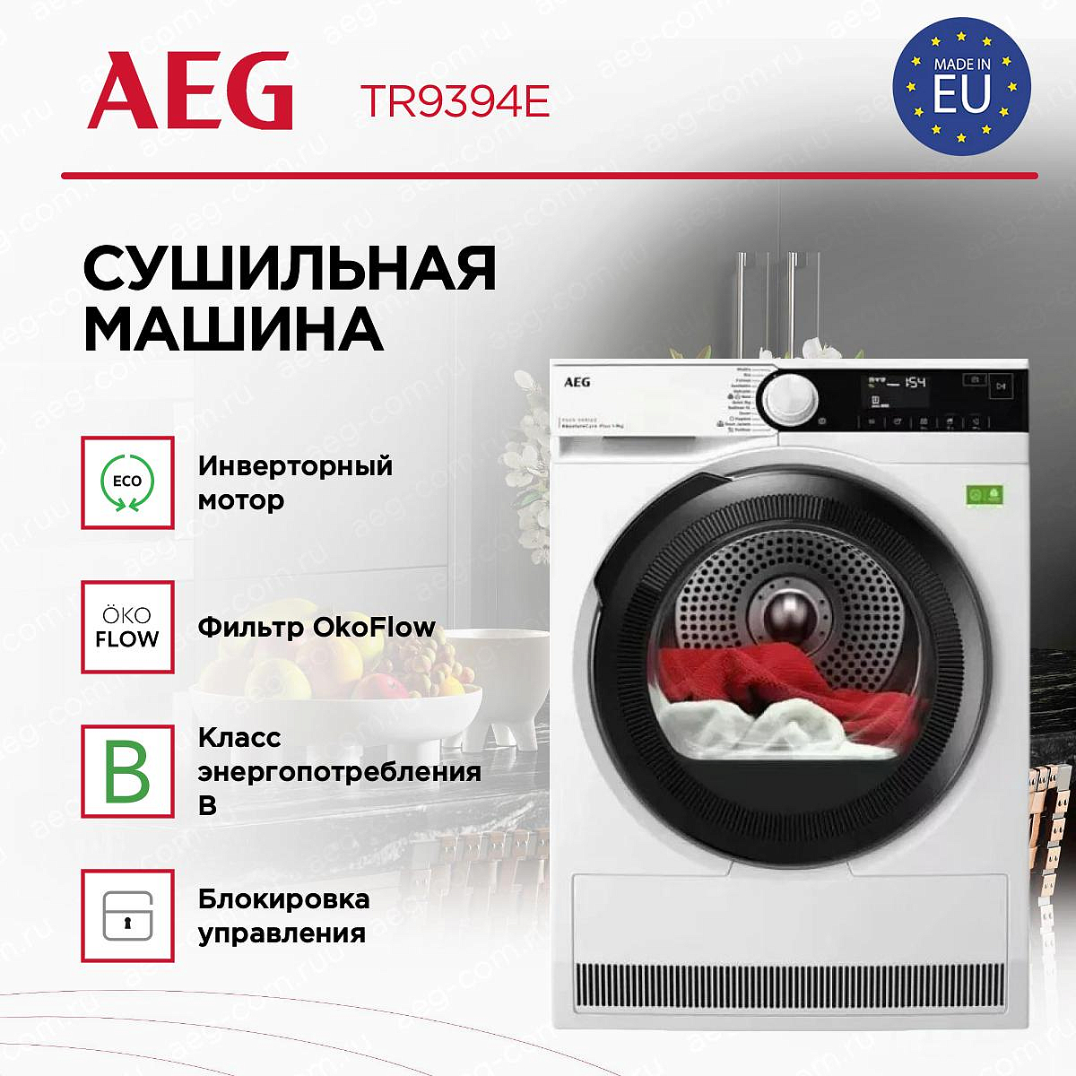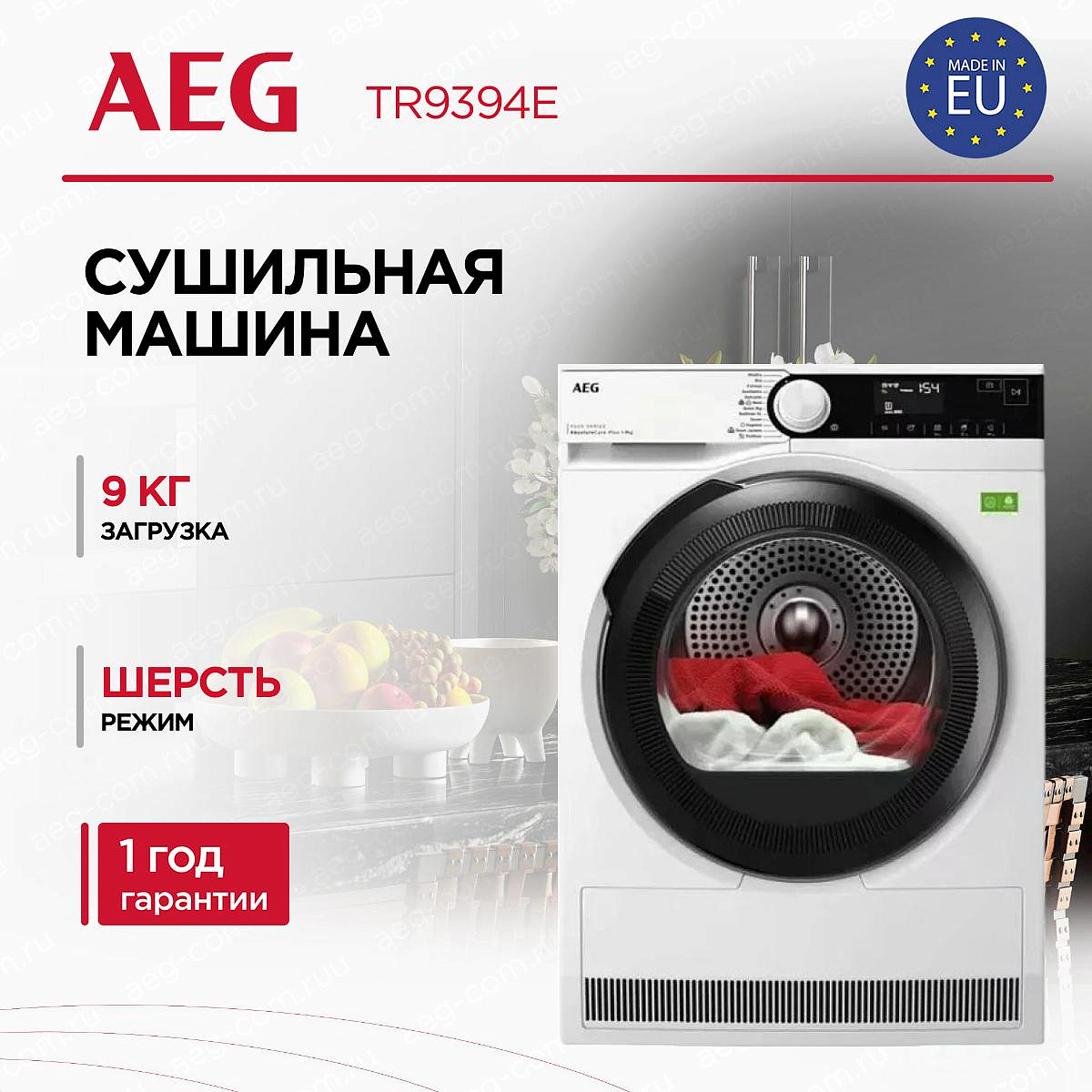 Сушильная машина AEG TR9394E из серии 9000 создана для тех, кто ценит продуманный внешний вид и бережное отношение к вещам; сочетание белоснежного корпуса и чёрной панели управления придаёт интерьеру современный и строгий акцент, а затемнённый люк подчёркивает технологичность техники. Высокая конструкция высотой 85 см экономит полезное место, оставляя достаточно объёма для загрузки девяти килограммов белья: внутренний барабан из нержавеющей стали с технологией AbsoluteCare® обеспечивает равномерное движение, мягкую термообработку и защиту волокон.