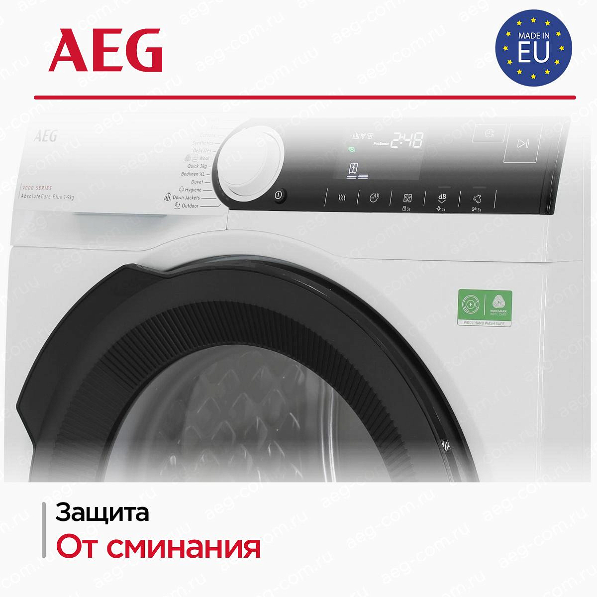 Дизайн и эргономика продуманы до мелочей: контраст чёрной панели и люка с белым корпусом создаёт аккуратный визуальный образ, удобный люк обеспечивает лёгкий доступ к содержимому, а свет в барабане помогает находить мелкие вещи. Сенсорные поворотные переключатели дают тактильную обратную связь и позволяют плавно менять параметры без лишних усилий, а крупный экран отображает оставшееся время и выбранные опции. Для пользователей, заботящихся о здоровье и чистоте, предусмотрена программа «Гигиена», устраняющая нежелательные бактерии и запахи в волокнах, а специальные режимы для пуховых изделий и верхней одежды сохраняют тепловую изоляцию и форму изделий.
