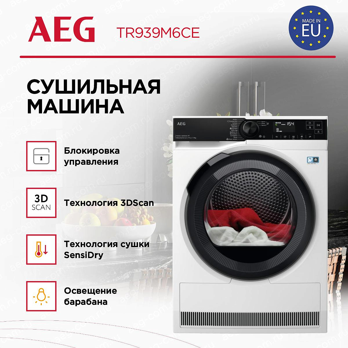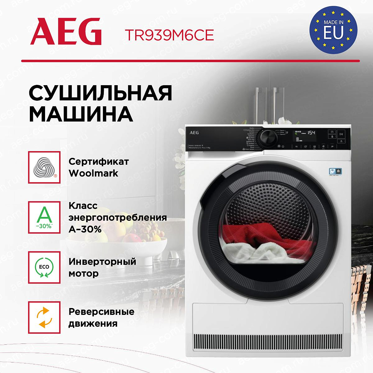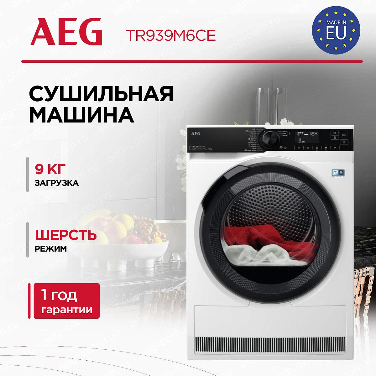 Сушильная машина AEG TR939M6CE серии 9000 представляет собой отдельностоящий прибор, работающий по принципу теплового насоса. В этом обзоре речь пойдёт о её конструктивных особенностях и вместимости, вариантах размещения, доступных программах и технологических решениях, а также о возможных неполадках, о которых устройство сообщает с помощью кодов ошибок.
