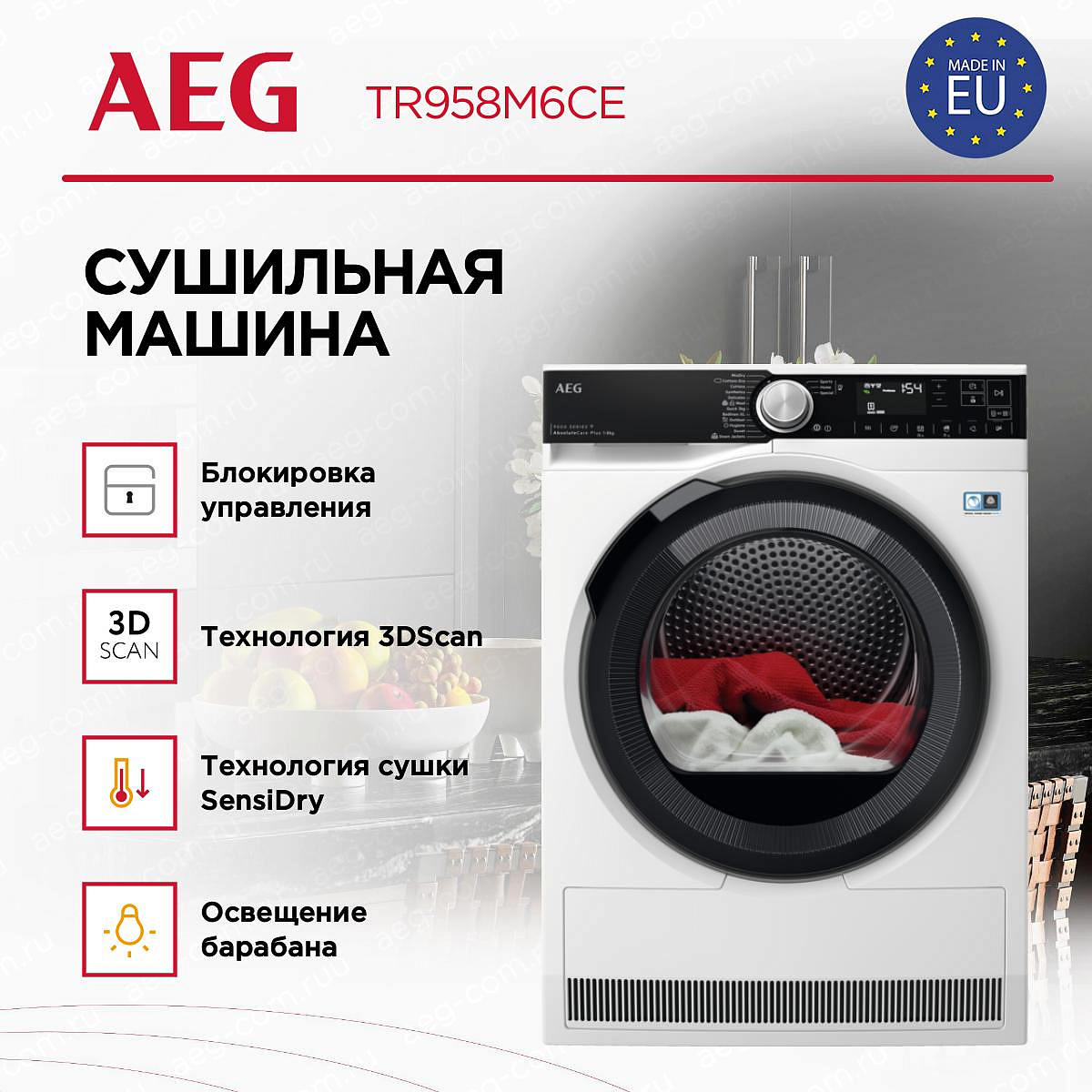 Сушильная машина AEG TR958M6CE серии 9000 представляет собой отдельностоящий прибор, работающий по принципу теплового насоса. В этом обзоре речь пойдёт о её конструктивных особенностях и вместимости, вариантах размещения, доступных программах и технологических решениях, а также о возможных неполадках, о которых устройство сообщает с помощью кодов ошибок.