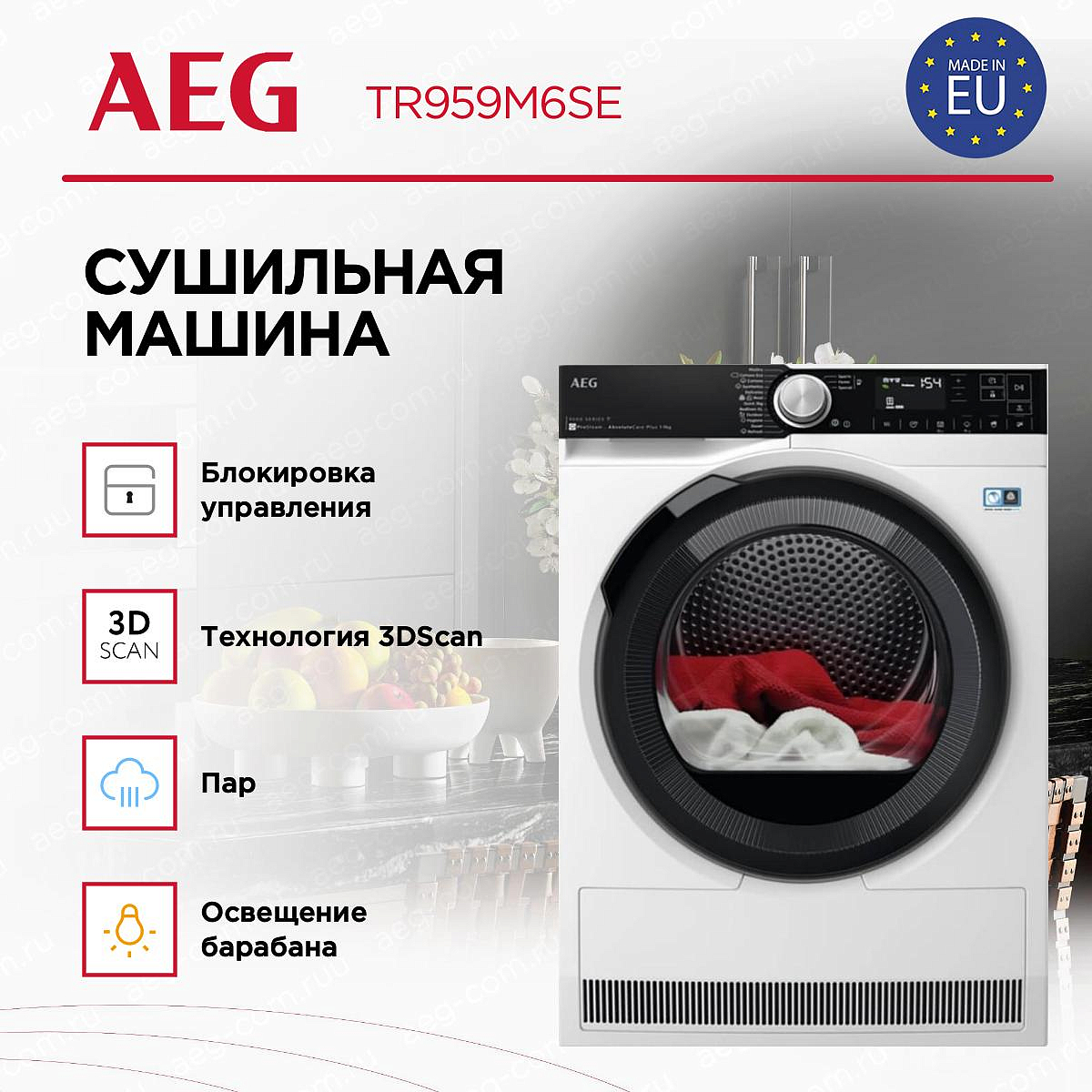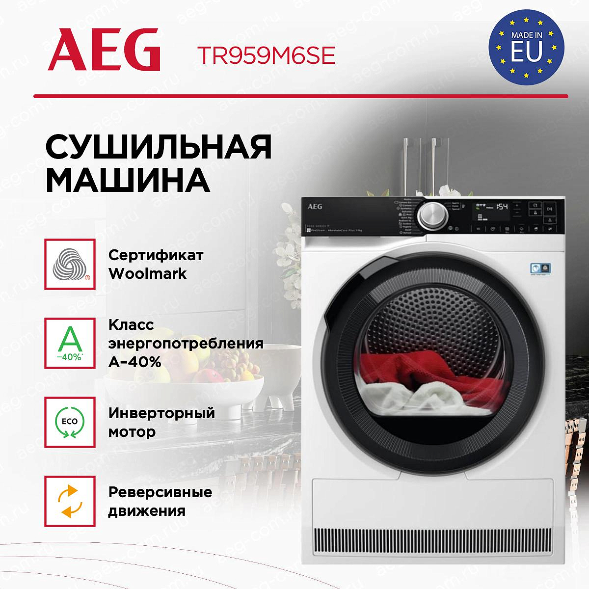 Сушильная машина AEG TR959M6SE серии 9000 представляет собой технологичное и энергоэффективное решение для домашнего использования. Вместительный барабан специальной конструкции бережно обрабатывает вещи, а технология теплового насоса обеспечивает низкие температуры сушки, что продлевает жизнь тканям и предотвращает усадку. Удобное управление, наличие подсветки и нейтральный дизайн делают эксплуатацию комфортной, а регулярный уход сводится к своевременной очистке фильтра и опорожнению контейнера для конденсата. Низкий уровень шума и минимальная вибрация позволяют разместить прибор практически в любом помещении, не опасаясь дискомфорта. Приобрести эту модель с официальной гарантией можно в нашем магазине, который является авторизованным партнёром бренда.