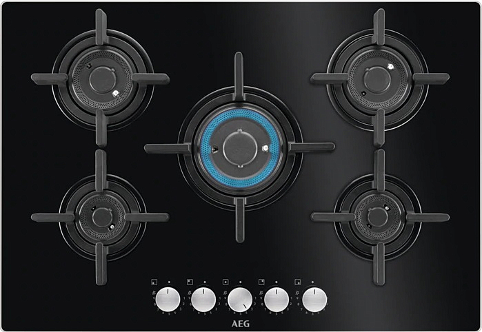 Варочная панель AEG HKB75029NB широкая и на пять конфорок, будет удобно готовить несколько блюд одновременно. Стеклянная поверхность хорошо смотрится и легко чистится от загрязнений. Точная регулировка пламени легко настроить и не нужно наклоняться, чтобы посмотреть. Горелки сделаны вровень с поверхностью, что дает эстетичный внешний вид и простоту обслуживания.