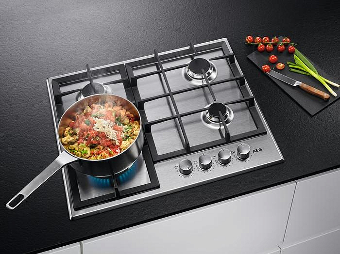 Варочная панель AEG HGB64420SM — это высококачественное изделие, произведенное в Италии. Она сочетает в себе не только функциональность, но и эстетическую привлекательность. Основным материалом данной модели является нержавеющая сталь, которая придает панели благородный и современный вид. Скошенный край без рамки добавляет элегантности в общий дизайн.
