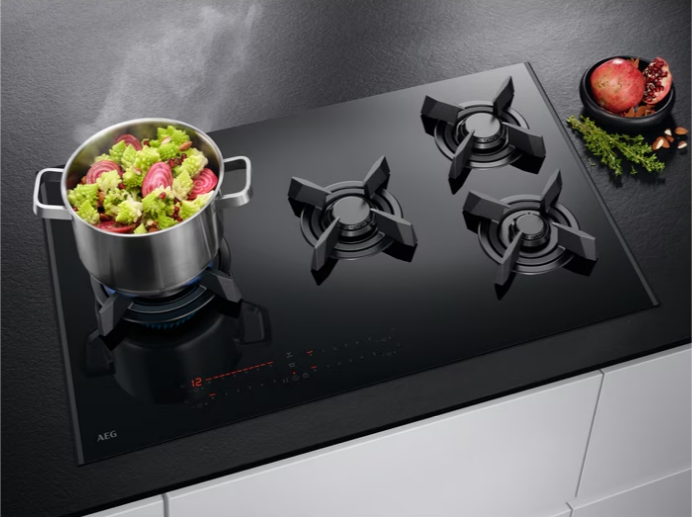 Четыре конфорки с различной мощностью и диаметром, позволяют готовить блюда разной сложности и объема. Конструкция горелок VerticalFlame оптимизирует распределение пламени, улучшая эффективность нагрева. Технология OptiFix™ упрощает процесс монтажа, а функции Stop&Go и Hob2Hood обеспечивают удобство и автоматическую синхронизацию с вытяжкой. Особое внимание уделено безопасности: предусмотрена защита от детей, блокировка панели управления, автоматическое отключение и газ-контроль, что значительно снижает риск аварийных ситуаций.