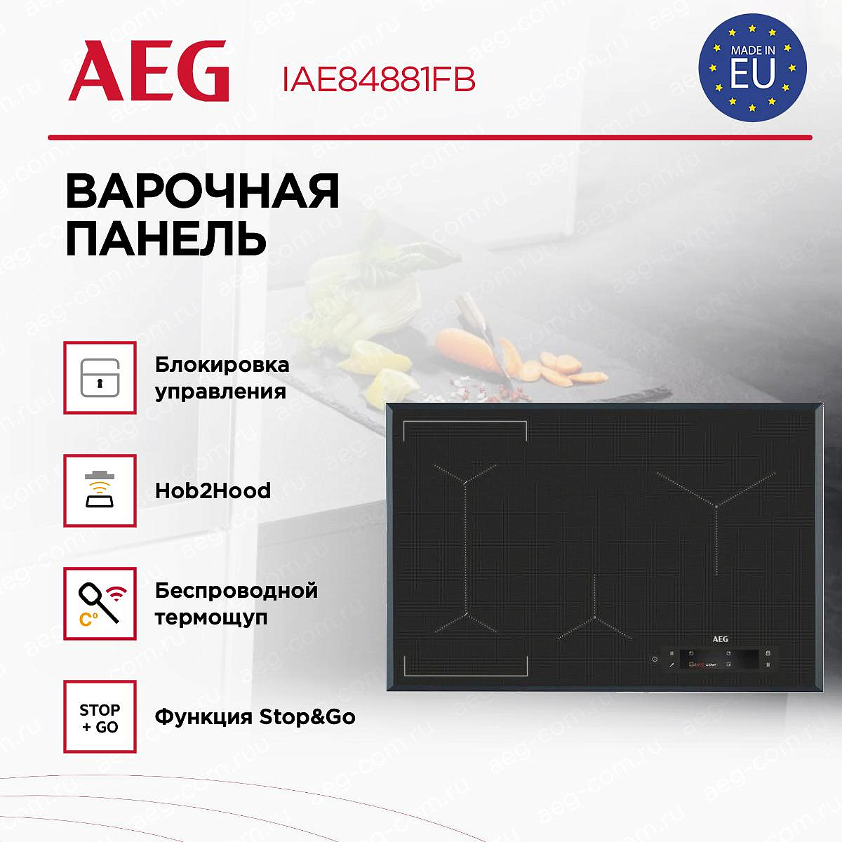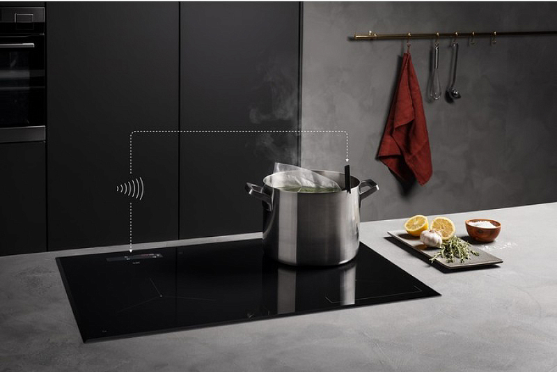 Варочная панель AEG IAE84881FB оснащена беспроводным термощупом SensePro®, который позволяет точно контролировать температуру приготовления. Также имеется функция Hob2Hood, которая позволяет управлять вытяжкой прямо с панели.