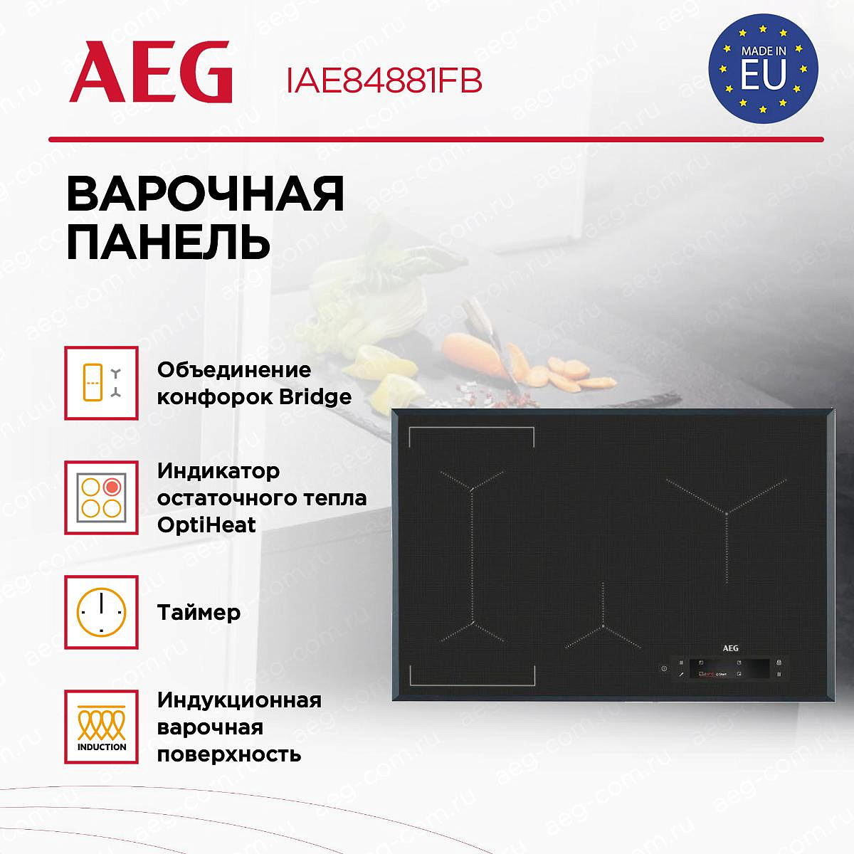 Индукционная варочная панель AEG IAE84881FB, произведенная в Германии, представляет собой современное решение для вашей кухни. Это устройство имеет габариты 78 см в ширину, 52 см в глубину и всего 6.7 см в высоту, что позволяет встраивать его в ниши размером 75×49 см. Дизайн варочной панели выполнен в темно-сером цвете, который прекрасно впишется в любой интерьер. Ее поверхность изготовлена из стеклокерамики, что обеспечивает ей долгий срок службы и легкость в уходе. Скошенный край добавляет элегантности и стиля в общий образ панели.