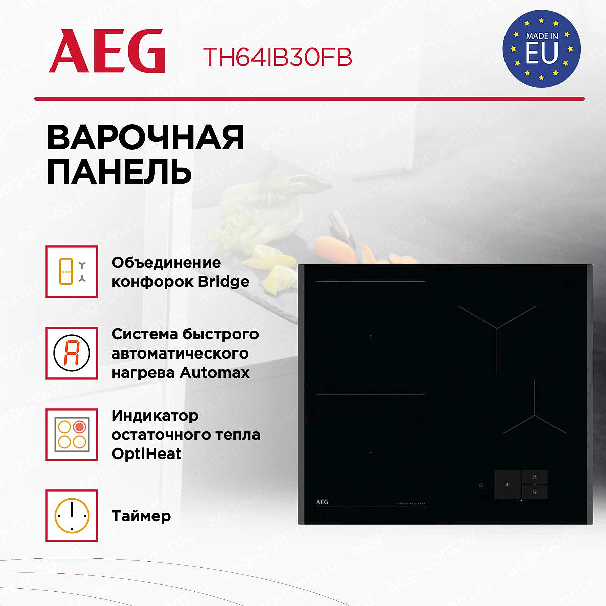 Варочная панель AEG TH64IB30FB — стильный прибор линии MultiBridge с скошенным краем и чёрной стеклокерамической поверхностью, гармонично вписывающийся в современную кухню. Сенсорная панель обеспечивает интуитивное управление, индикатор остаточного нагрева OptiHeat повышает безопасность, а встроенный таймер с режимами Eco, звуковым сигналом и функцией автоматического отключения добавляет комфорта при приготовлении. Технологии Automax и PowerBoost гарантируют быстрый разогрев, Bridge даёт возможность объединять зоны для крупных ёмкостей, а функция PowerSlide предоставляет удобство плавного перемещения посуды между секциями с разными температурами.
