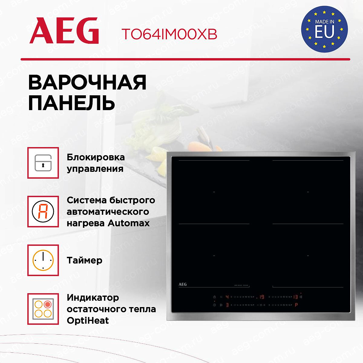 Варочная панель AEG TO64IM00XB обеспечивает безопасность благодаря защите детей и блокировке панели управления. Также присутствует функция автоматического отключения, что предотвращает возможные несчастные случаи. Все это делает ее идеальным выбором для семей с детьми. Несмотря на свои компактные размеры (высота 4.9 см, ширина 57.6 см, глубина 51.6 см), варочная панель AEG TO64IM00XB обладает всеми необходимыми функциями. Она легко встраивается в любую кухню, а габариты ниши для встраивания (56-56.1 х 49-49.1 см) делают процесс установки еще проще. Максимальная электрическая мощность подключения составляет 12.8 кВт, что обеспечивает высокую производительность.