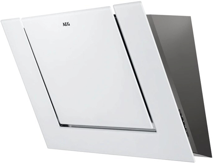 Вытяжка AEG DVB4850W — наклонная модель белого цвета. Монтируется на стену, и в случае приобретения угольного фильтра может работать в режиме рециркуляции на трех скоростях. Управление — кнопочное, LED подсветка ярко освещает рабочую поверхность. Важное преимущество прибора — высокая производительность на максимальной ступени 647 м³/ч при низком уровне шума 67 дБ.