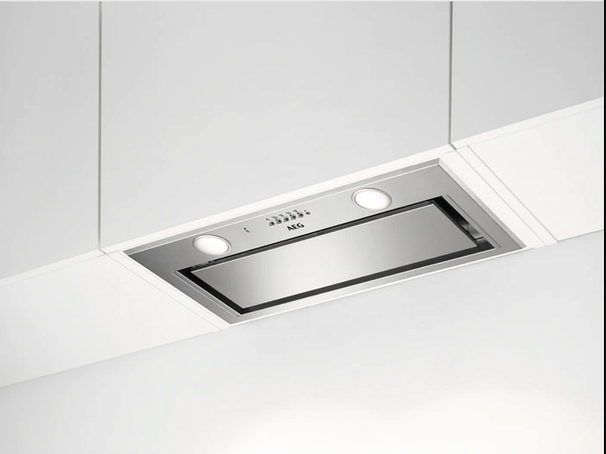 Вытяжка AEG DGE5661HM относится к типу встраиваемых. Она устанавливается в подвесной шкаф, поэтому практически не видна пользователю. Её можно использовать в двух режимах. Первый — и самый распространённый — это отвод. Для него необходимо проложить магистраль в вентиляцию и установить антивозвратный клапан, чтобы насыщенный испарениями. Гарью и другими частицами воздух не заходил обратно. Второй режим называется рециркуляция. Он создан для очистки воздуха в помещении. Он всасывается и оседает на угольных фильтрах, после чего абсорбируется и уходит чистым на кухню.