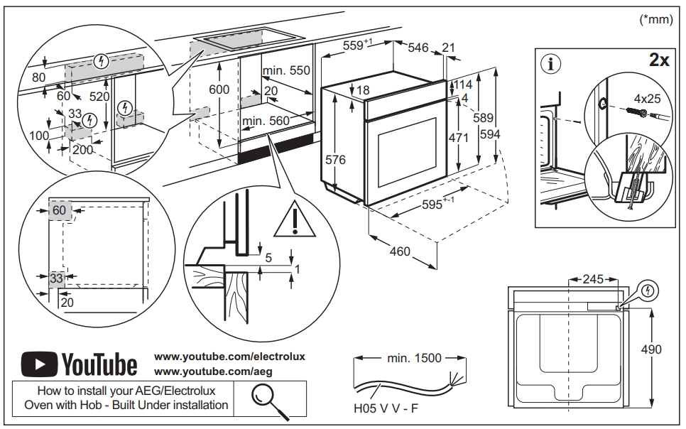 Схема встраивания 2 для духового шкафа AEG OS6PB631AB