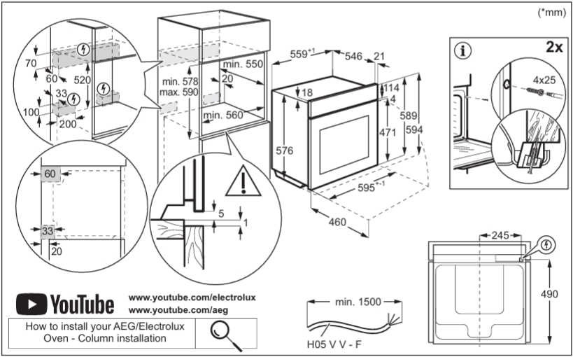 Схема встраивания 1 для духового шкафа AEG NBA5P43AK