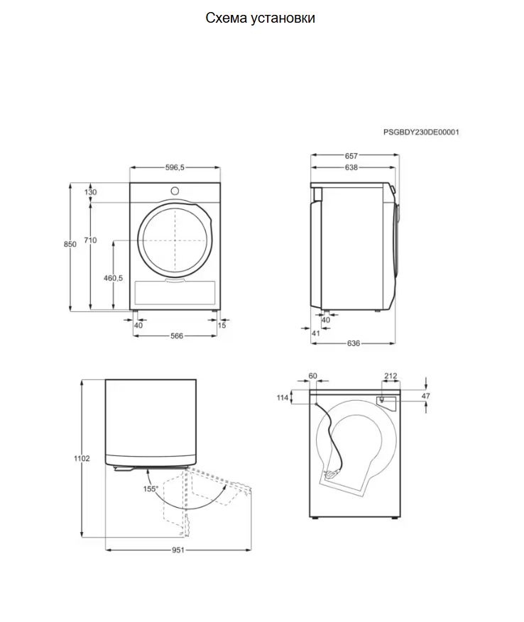 Схема встраивания для сушильной машины AEG TR9396CE