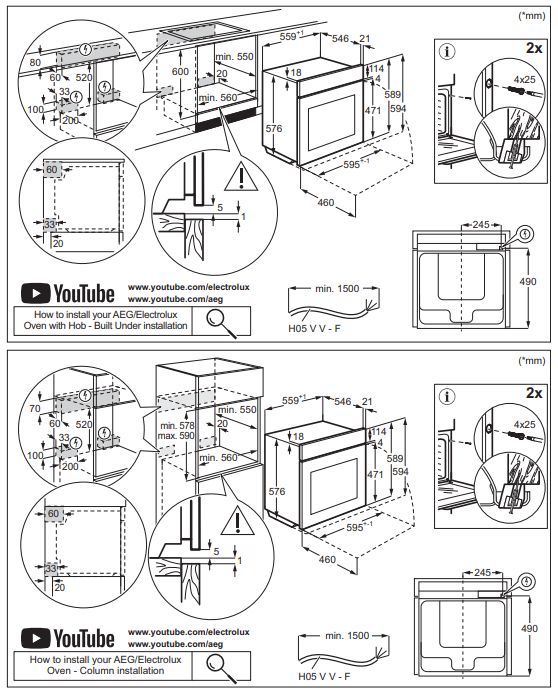 Схема встраивания для духового шкафа AEG OA5CB531AB
