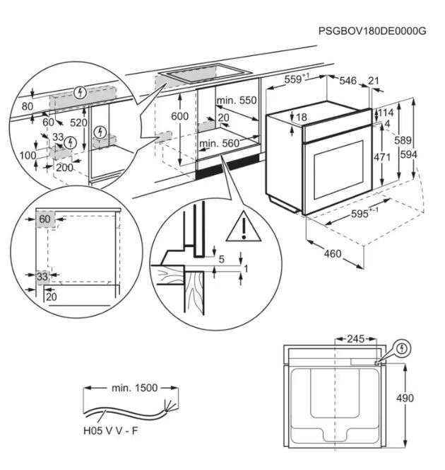 Схема встраивания 1 для духового шкафа AEG TP8SB731AT
