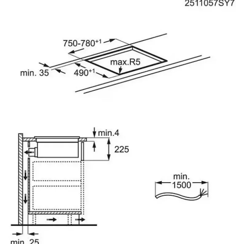 Схема встраивания для варочной панели AEG TU84CF43CB