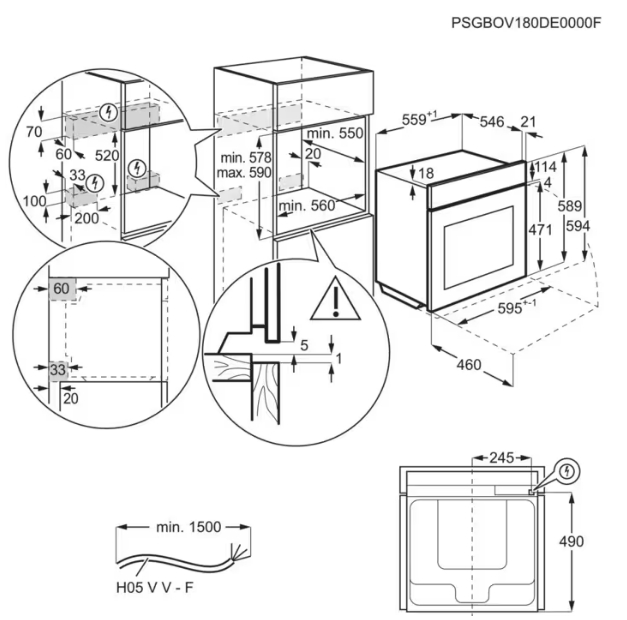 Схема встраивания 1 для духового шкафа AEG NBP8S731AT