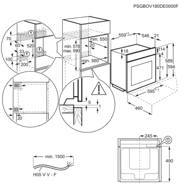 Схема встраивания 1 для духового шкафа AEG NBB8S731AT